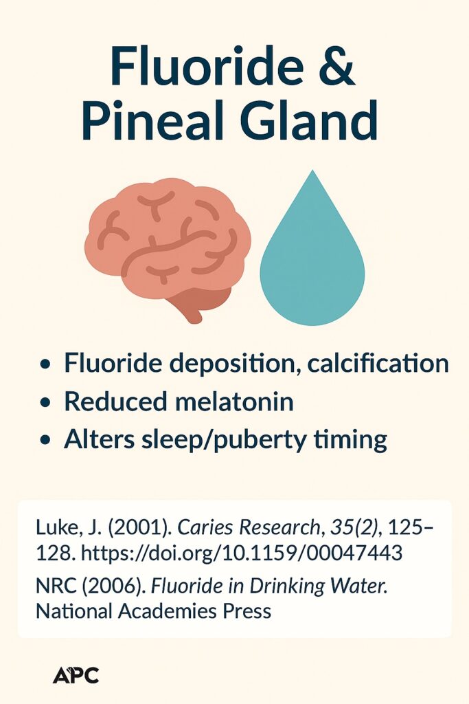 • Endocrine disruption: Fluoride interferes with thyroid function and inhibits critical enzymes — a property once exploited by the Manhattan Project to detect nuclear contamination (National Research Council, 2006).